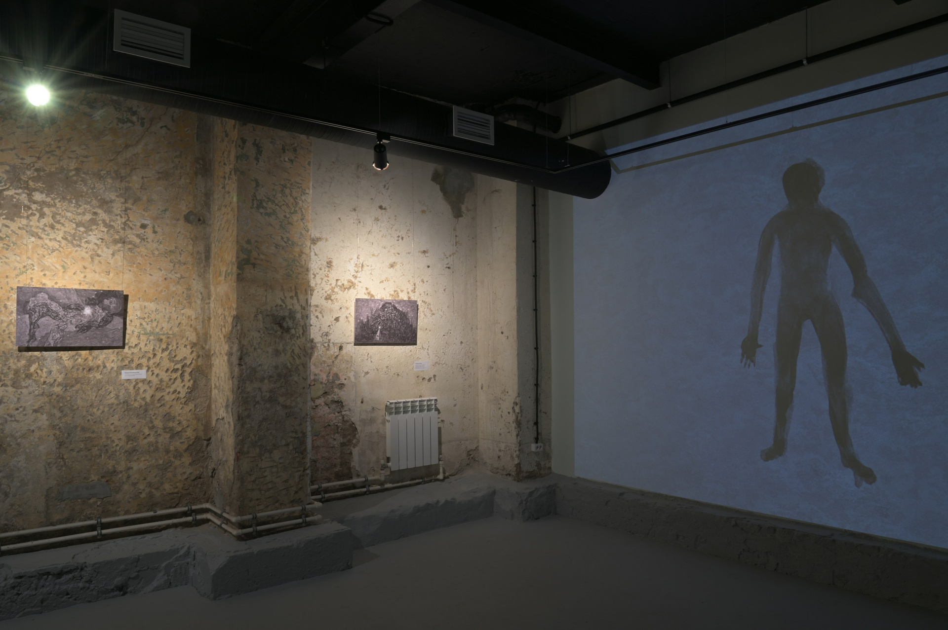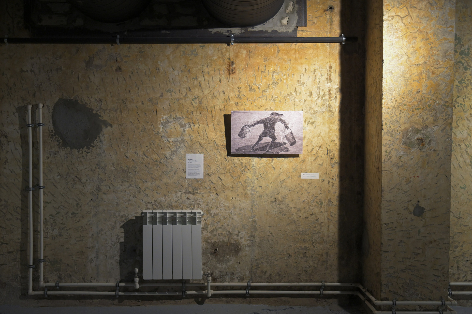 12 фотографий, цифровая печать на самоклеящейся бумаге, накатка на ПВХ 5 мм, ламинация, 60х36 см; книга "Харитонутск. Город-состояние"; проекция